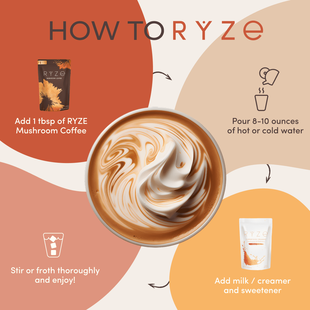 - COFFEE, BUT BETTER: Powered by 6 adaptogenic mushrooms, RYZE Mushroom Coffee supports you with all the energy and focus of regular coffee, with none of the jitters & crashes